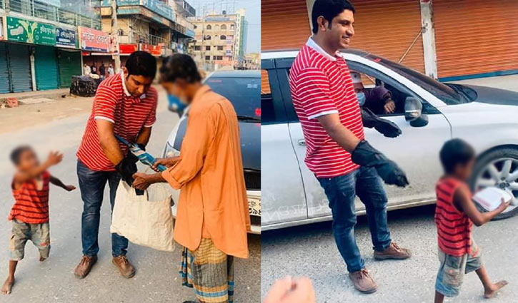 মাঝে ইফতার সামগ্রী বিতরণ করছিলেন কুষ্টিয়া জেলা ছাত্রলীগের নেতা। এ সময় তার কাছে ছুটে এলো এক ছিন্নমূল শিশু।