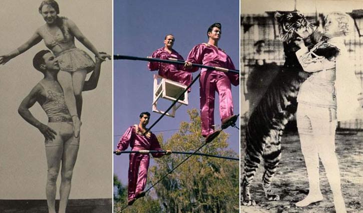 শূন্যে দড়ির ওপর দিয়ে ভয়-ডরহীন হেঁটে যাওয়া, এক চাকার সাইকেল চালানো, একজনের কাঁধে আরেকজন দাঁড়িয়ে উঁচু পিরামিড সৃষ্টি,