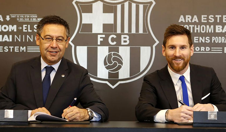 লিওনেল মেসিকে নিয়ে আরেকটি ঝড়ের মধ্যে পড়েছে বার্সেলোনা। স্প্যানিশ সংবাদপত্র এল মুন্দো কাতালান ক্লাবের সঙ্গে আর্জেন্টাইন ফরোয়ার্ডের রেকর্ড চুক্তির তথ্য ফাঁস করে দিয়েছে, যা নিয়ে চলছে তুমুল বিতর্ক। এই গোপন তথ্য ফাঁস করার জন্য অভিযোগের তীর ছোড়া হচ্ছে ২০১৭ সালের ওই চুক্তির সময় প্রেসিডেন্টের দায়িত্বে থাকা হোসেপ মারিয়া বার্তোমেউর দিকে। কিন্তু অভিযোগ অস্বীকার করেছেন গত অক্টোবরে পদত্যাগ করা সাবেক প্রেসিডেন্ট।