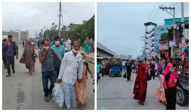 সরকার ঘোষিত কঠোর লকডাউনের মধ্যেই খুলে দেওয়া হয়েছে পোশাক কারখানা। রোববার থেকে কারখানা খোলা শুনে হাজার হাজার শ্রমিকরা ফিরতে শুরু করেছেন ঢাকা ও আশপাশের শিল্প- অঞ্চলে। আরো পড়ুন
