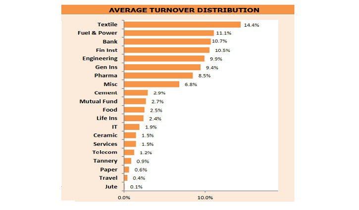 দেশের প্রধান শেয়ারবাজার ঢাকা স্টক এক্সচেঞ্জে (ডিএসই) বিদায়ী সপ্তাহে (২২ থেকে ২৬ আগস্ট) খাত ভিত্তিক লেনদেনের শীর্ষ স্থানে উঠে এসেছে বস্ত্র খাত। ডিএসইতে মোট খাত ভিত্তিক লেনদেনের মধ্যে ১৪.৪০ শতাংশ অবদান রয়েছে এ খাত থেকে। আরো পড়ুন
