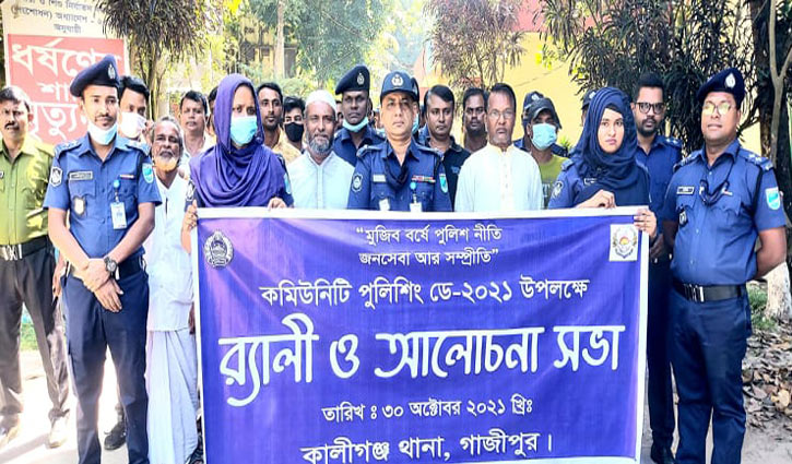 ‘মুজিব বর্ষে পুলিশ নীতি-জনসেবা আর সম্প্রীতি’ এই প্রতিপাদ্যে গাজীপুরের কালীগঞ্জে কমিউনিটি পুলিশিং ডে উপলক্ষে র্যালি ও আলোচনা সভা অনুষ্ঠিত হয়েছে। আরো পড়ুন
