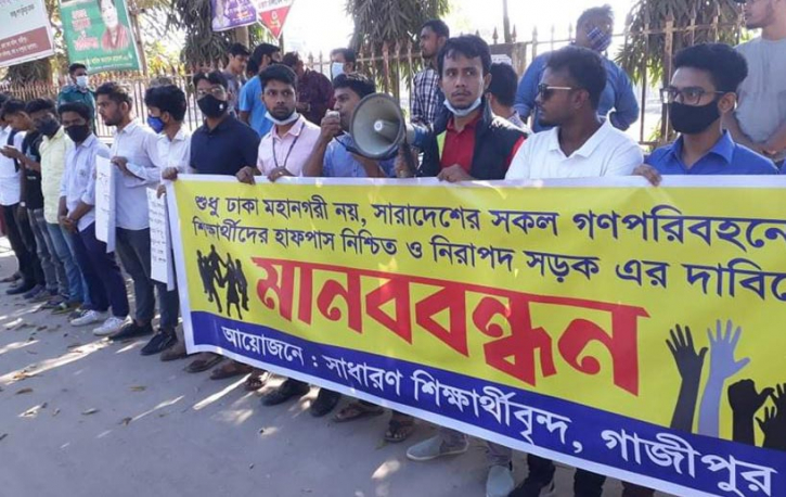 শুধু ঢাকা মহানগরী নয়, সারাদেশের সকল গণপরিবহনে শিক্ষার্থীদের হাফ ভাড়া ও নিরাপদ সড়কের দাবিতে মানববন্ধন করছেন গাজীপুরের সাধারণ শিক্ষার্থীরা। আরো পড়ুন