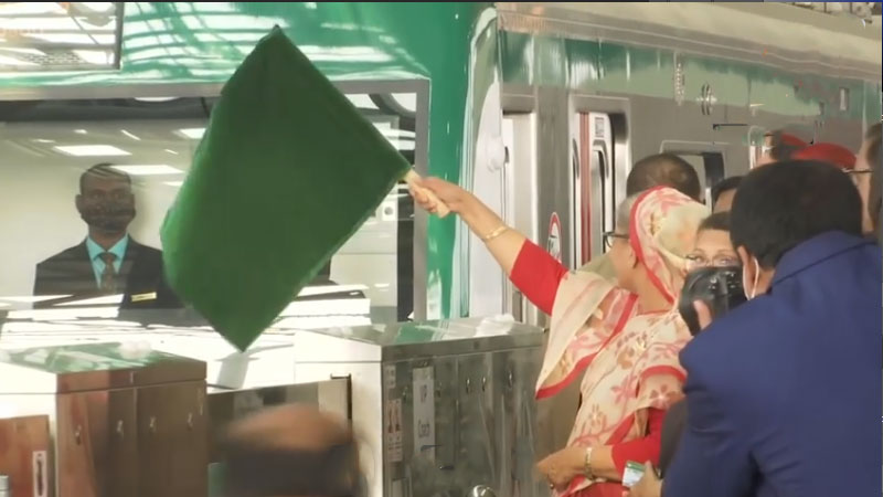 দেশে প্রথম মেট্রোরেল পথের একাংশের উদ্বোধনের পর প্রথম যাত্রী হলেন প্রধানমন্ত্রী শেখ হাসিনা। বুধবার (২৮ ডিসেম্বর) দুপুর ১টা ৫০ মিনিটে মেট্রোরেলের প্রথম যাত্রী হিসেবে দিয়াবাড়ী থেকে আগারগাঁও যাত্রা করেন তিনি। এর আগে দুপুর ১টার দিকে টিকিট কাটেন প্রধানমন্ত্রী।আরও পড়ুন ঃ